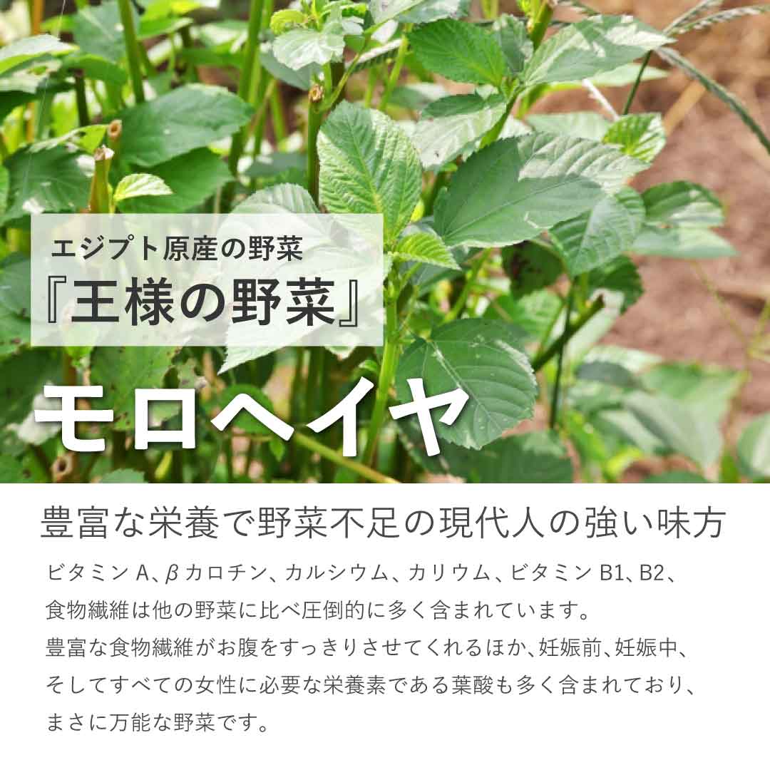モロヘイヤはエジプト原産の野菜でエジプト語で『野菜の王様』という意味です。