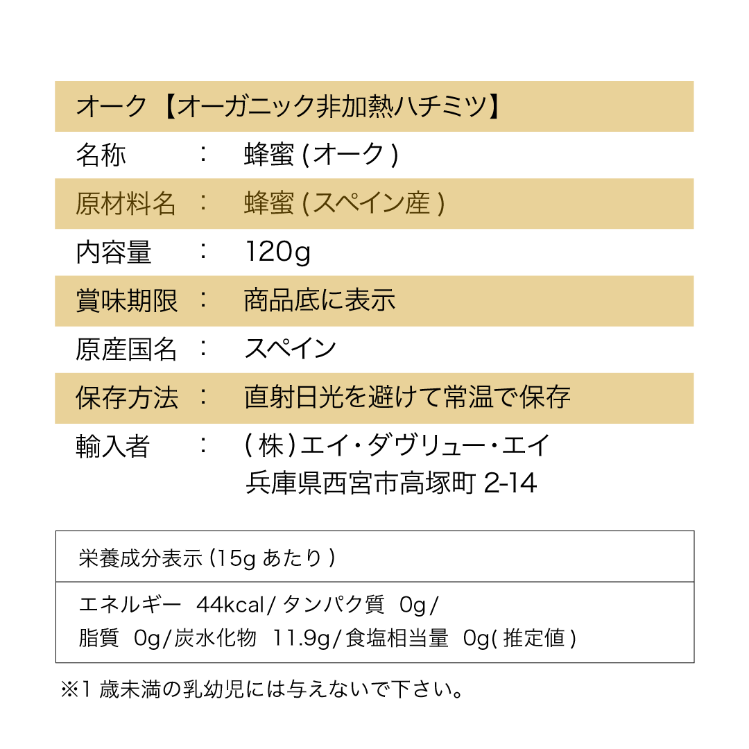OAK HONEY(オーク)120g【BIO認定/生はちみつ 】