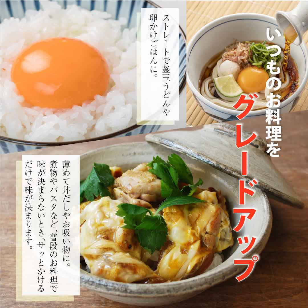 原材料有機しょうゆ(国内製造)、風味原料(かつお節、さば節)、砂糖、食塩、みりん、いしる、(一部に小麦・大豆・いか・さばを含む)