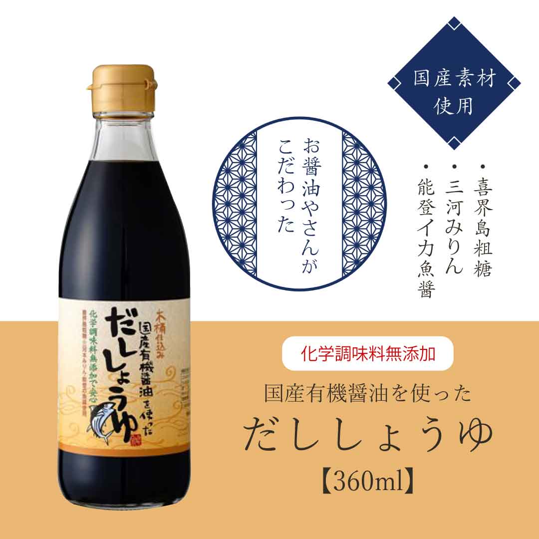 ホーム 調味料 醤油 / 調味料 / 国産有機醤油を使っただししょうゆ 360ml