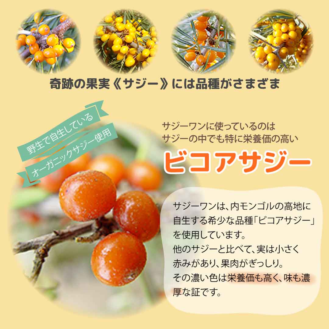 自然の恵みをたっぷりと含んだ、サジーワンこだわりのピューレジュースを、ぜひご体感ください。
