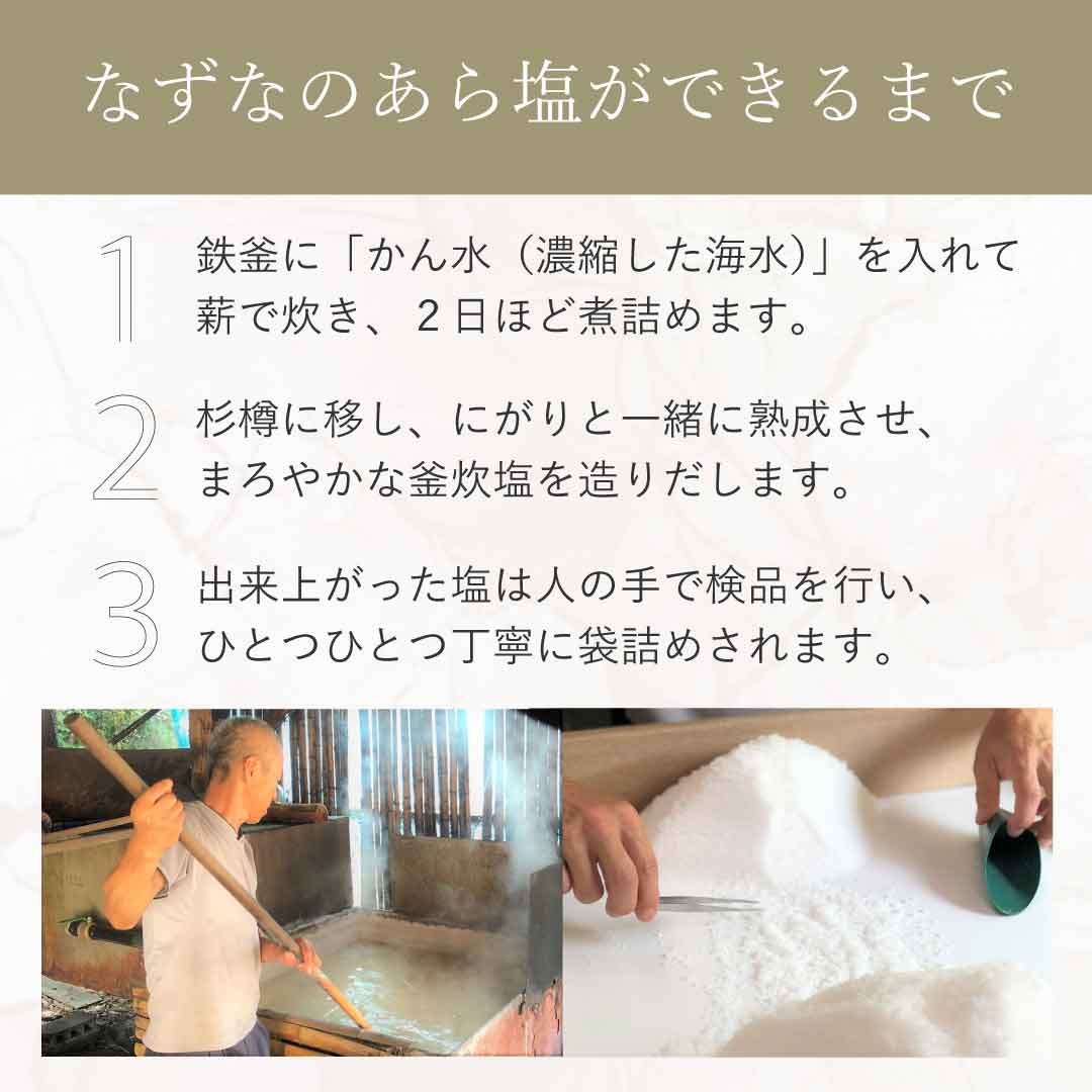2日ほど煮詰めて結晶化させた釜炊塩です。