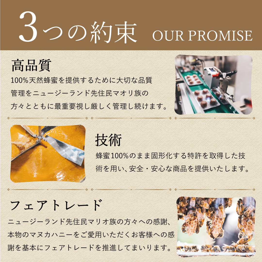 ・ゆっくり舐めて10分、舐めずに口の中に入れておくと30分、UMF®マヌカハニーの特別な効果が長時間続きます