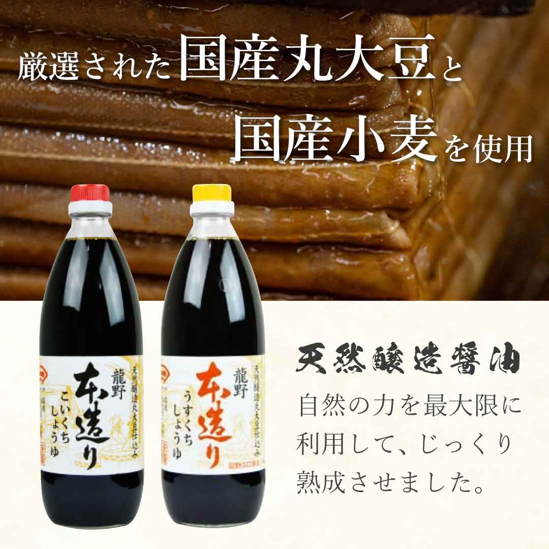 本品は400年来の醤油の銘醸地で知られる龍野でその伝統の上に豊富な経験と新しい技術により精選した丸大豆・小麦を使って真心をこめて熟成・醸造した本物の醤油です。