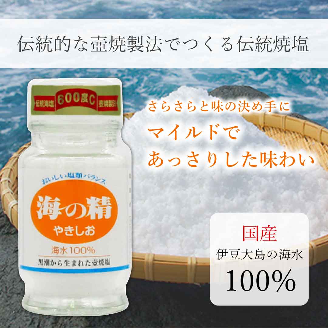 伊豆大島の海水100%、天日と平釜で作った日本の伝統海塩「海の精 あらしお」を、高温で焼成した製品です。