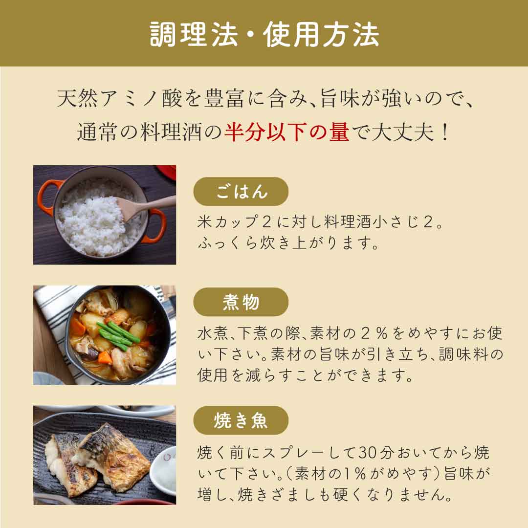 ■旨みが強いので、通常の料理酒の半分以下の量でよい