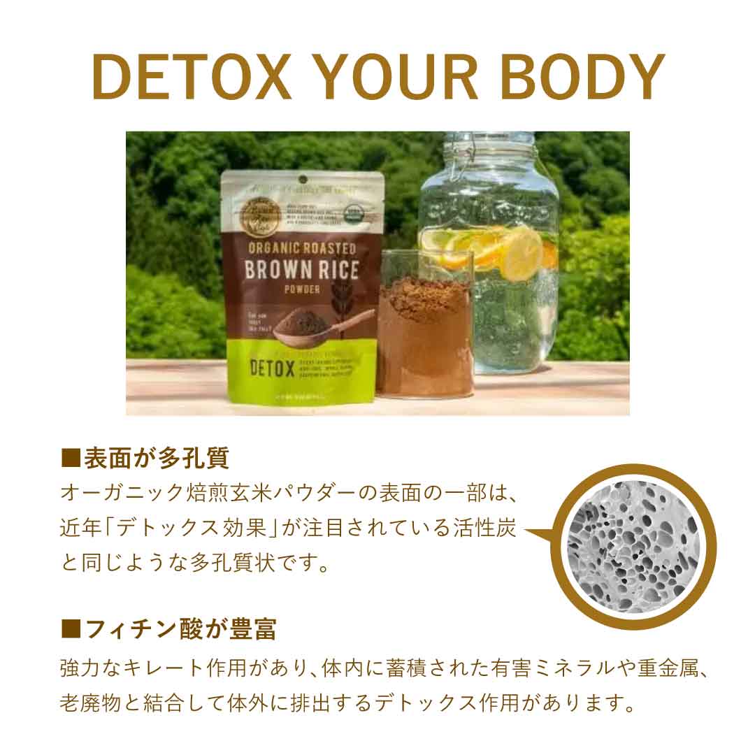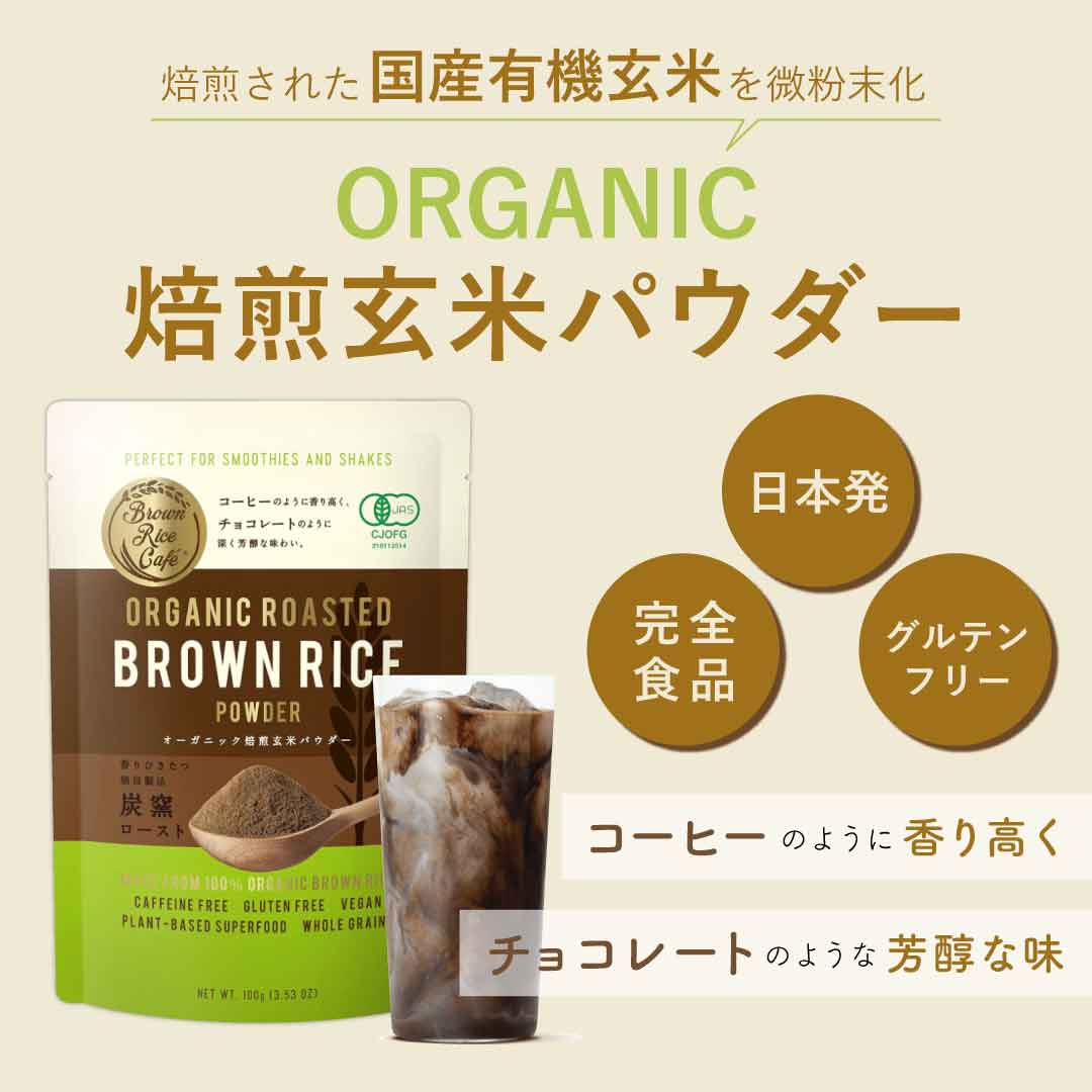焙煎された国産有機玄米を微粉末化した日本発スーパーフード。