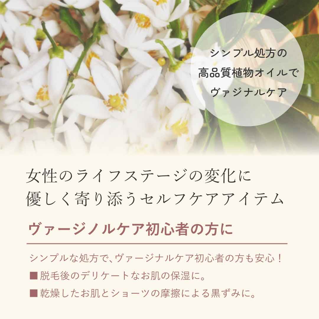 シンプル処方の高品質植物オイルでヴァジナルケアを。
