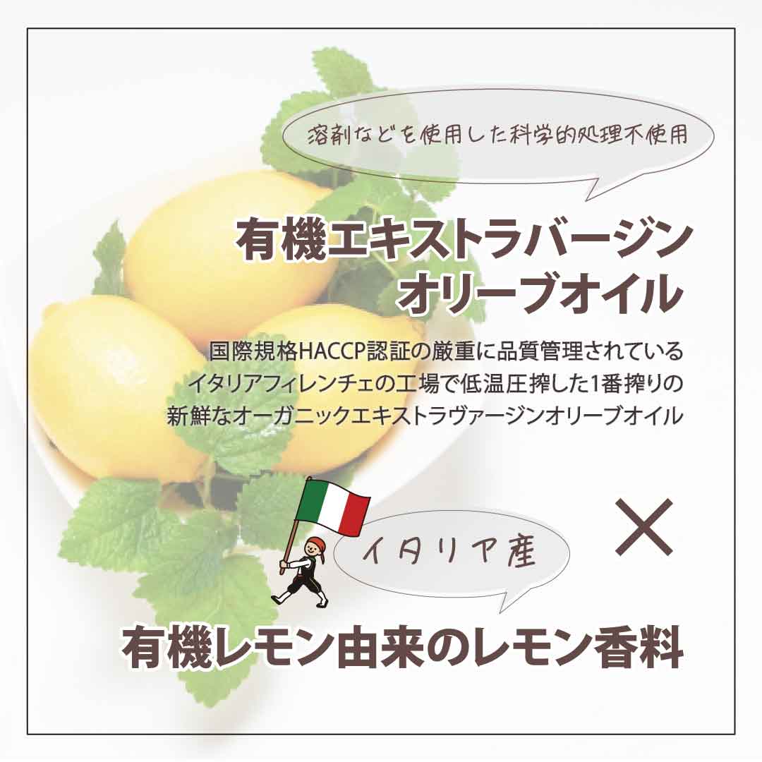 口当たりのなめらかなオリーブ特有のフルーティーなテイストとパスタやバケット、お魚・お肉料理にも相性抜群のレモン風味と食味です。